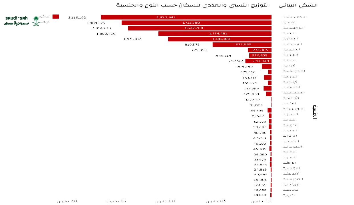| إجمالي عدد سكان السعودية | 36.6 مليون نسمة | 100% |